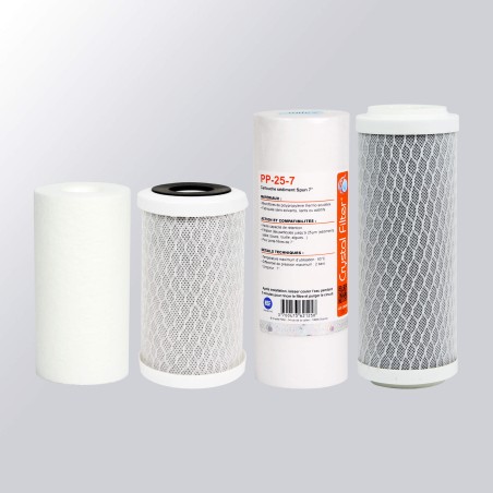 Retrouvez dans la famille Cartouche Filtre - Crystal Filter une large gamme de produits. Des portes filtres en 10 pouces, 20 pouces, en modèle standard ou Big Blue. Ainsi qu'un très large choix de cartouches standards et compatibles. Vous trouverez ici des filtres sédiments, charbon actif, et bien d'autres.