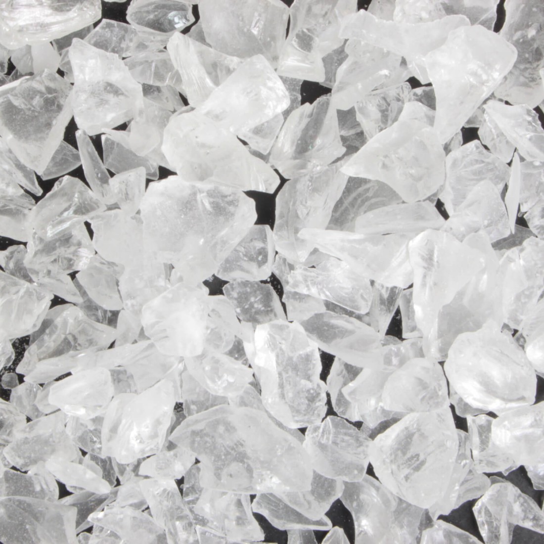 • Ces cristaux sont composés d'un mélange de métaphosphates à haute polymérisation. Les cristaux de polyphosphates ont un aspect vitreux transparent de couleur blanche. Composition typique : P2O5 > 60% et Na2O = 30% environ.
