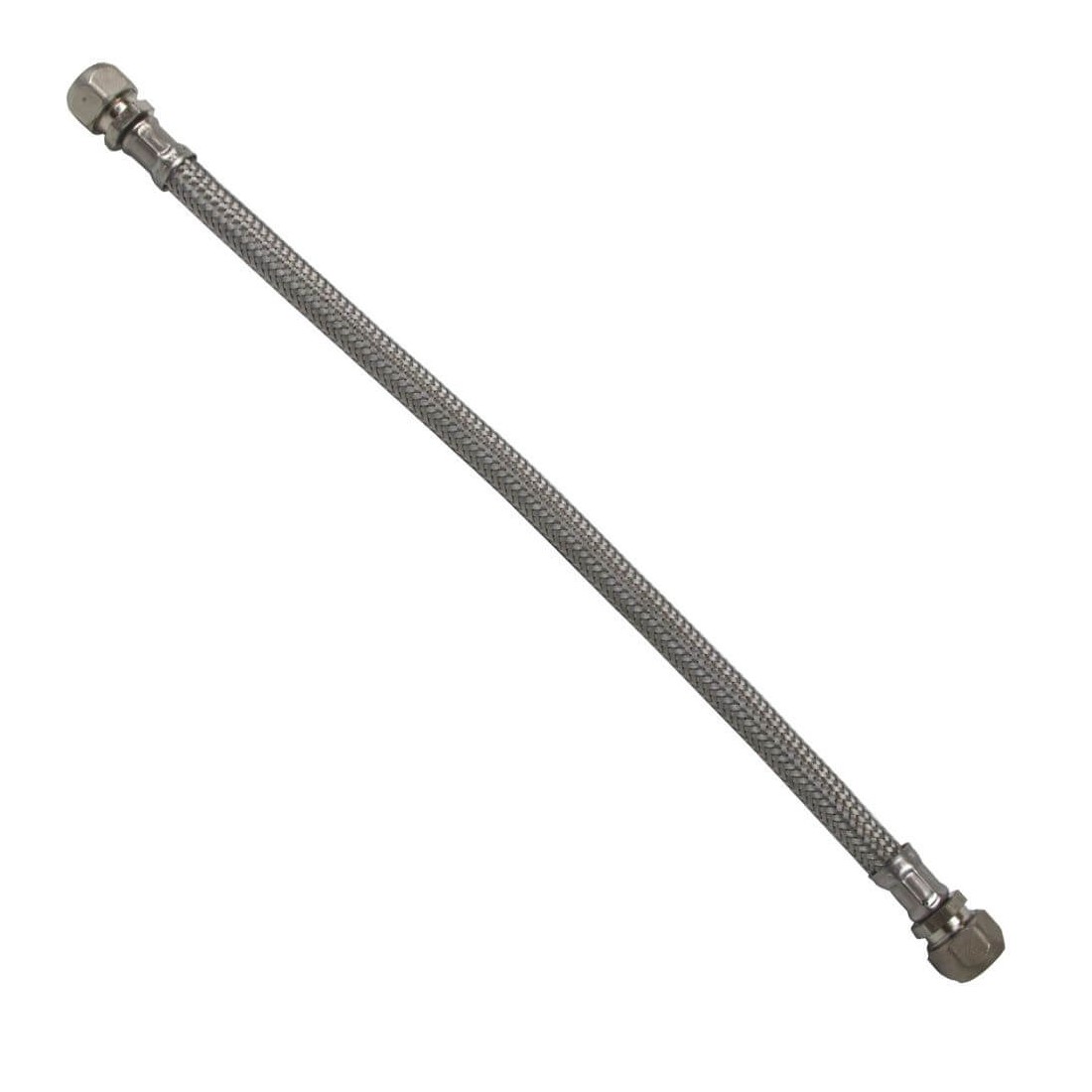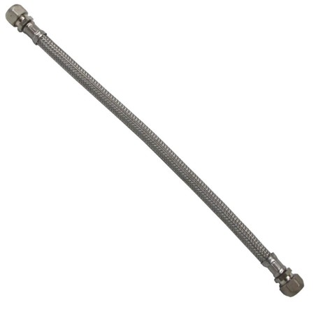 Tuyau de raccordement flexible DN8 avec tressage INOX (AISI 304). Taille : bicone 12 x 12 mm - longueur 35 cm. Pour alimentation des salles d'eau et appareils sanitaires.
