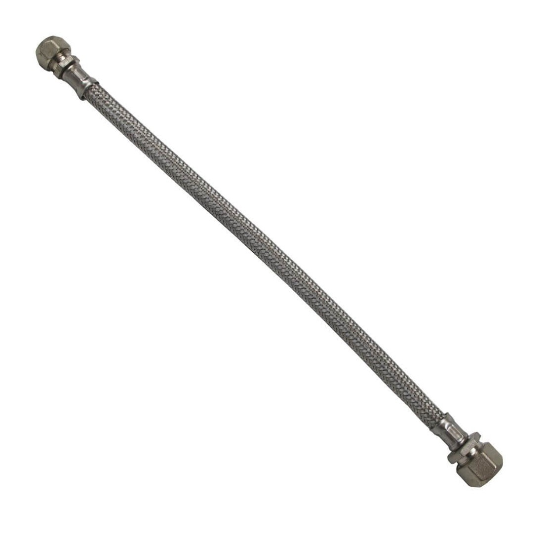 Tuyau de raccordement flexible DN8 avec tressage INOX (AISI 304). Taille : bicone 12 x 15 mm - longueur 35 cm. Pour alimentation des salles d'eau et appareils sanitaires.