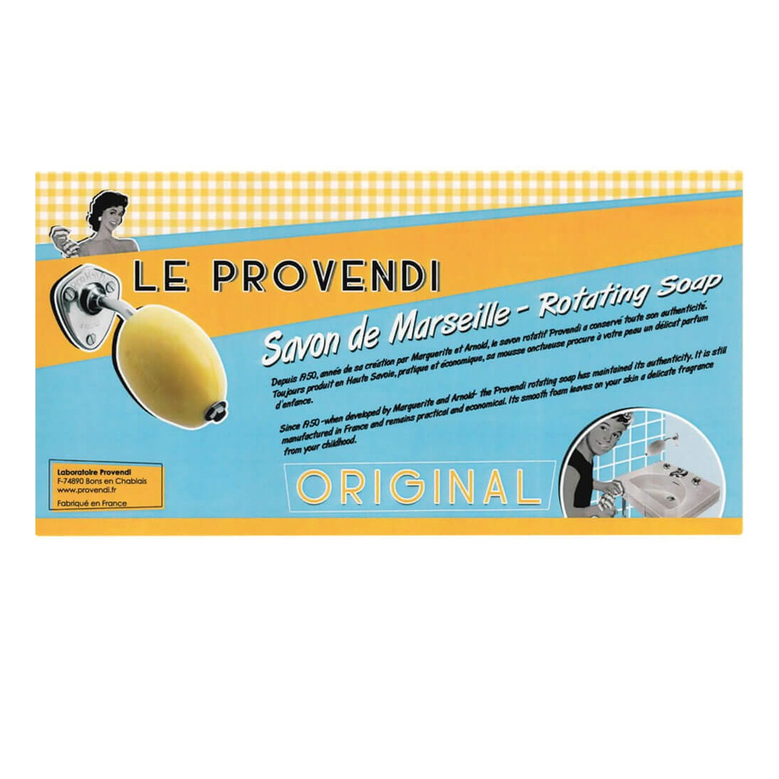 Depuis 1950, année de sa création par Marguerite et Arnold, le savon rotatif Provendi a conservé toute son authenticité. Toujours produit en Haute-Savoie, pratique et économique, sa mousse onctueuse procure à votre peau un délicat parfum d'enfance.