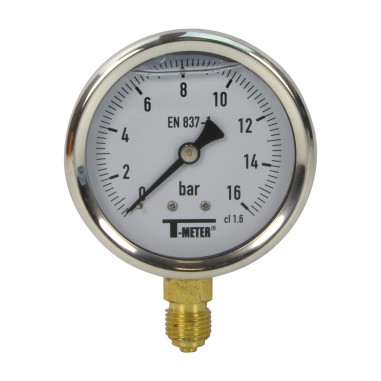 Ce manomètre à glycérine radial permet de mesurer la pression de 0 à 16 bars, soit 0 à 232 psi qui se trouve dans une canalisation.