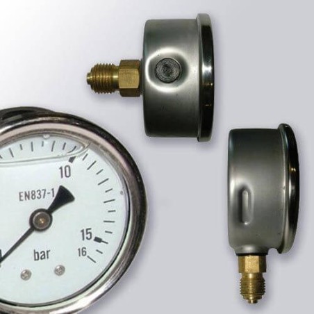 Expédié sous 48 heures Manomètre 0-25 bars Manomètre inox - Insert laiton - 0-25 bars ø 63 - 1/4'' - Radial / Glycérine Tmeter ALP002047 31,10 € Manomètre glycérine radial Corps inox - Insert Laiton 1/4'' Pression : 0-25 bars / 0 à 362 psi Diamètre 63 mm Ajouter au panier