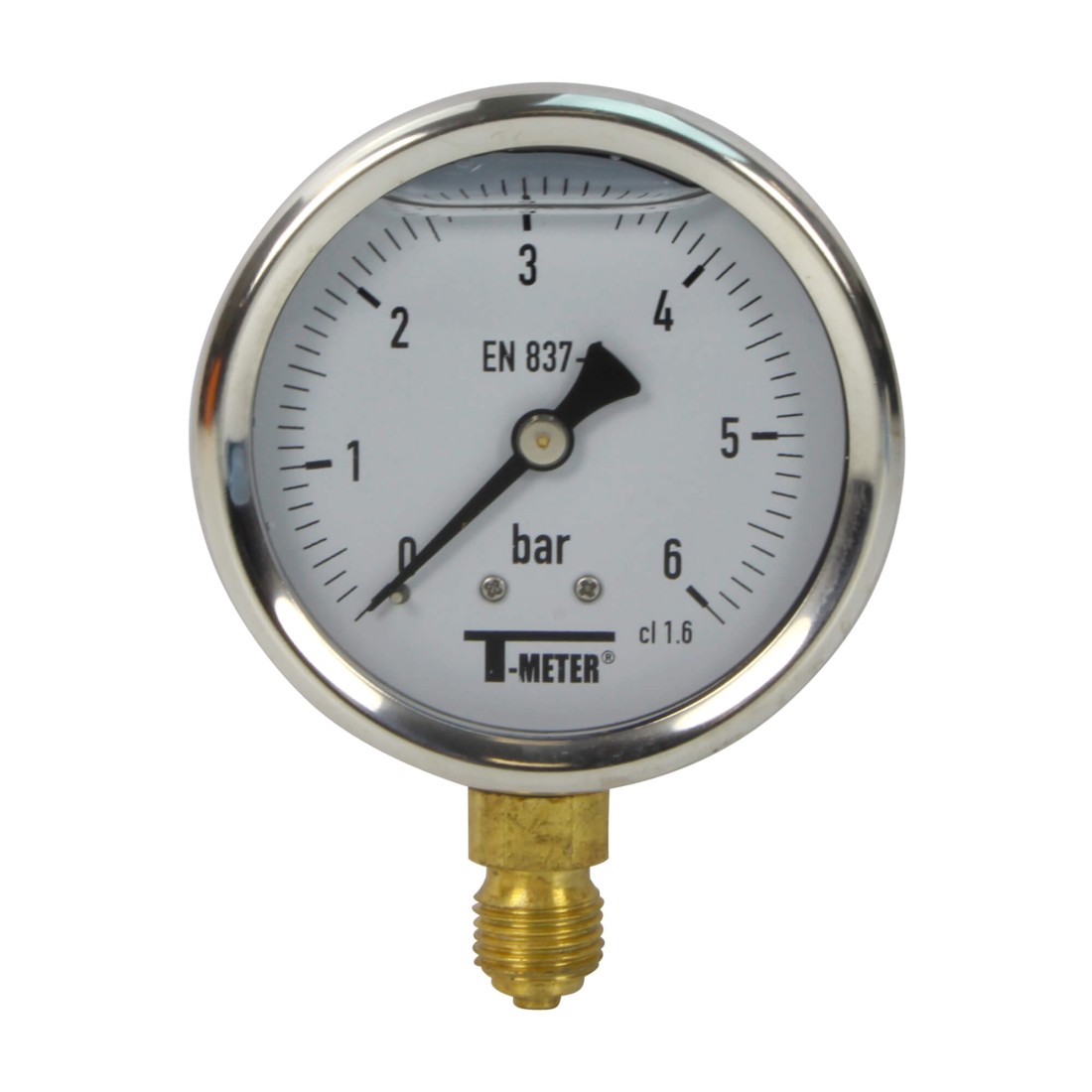 Ce manomètre à glycérine radial permet de mesurer la pression de 0 à 6 bars, soit 0 à 87 psi qui se trouve dans une canalisation.