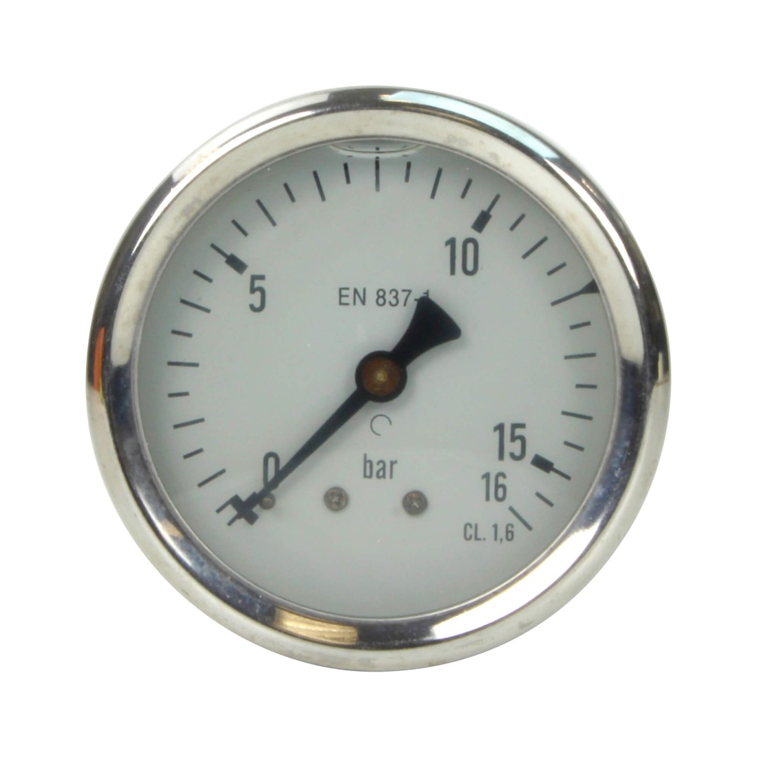Ce manomètre à glycérine axial permet de mesurer la pression de 0 à 16 bars, soit 0 à 232 psi qui se trouve dans une canalisation.
