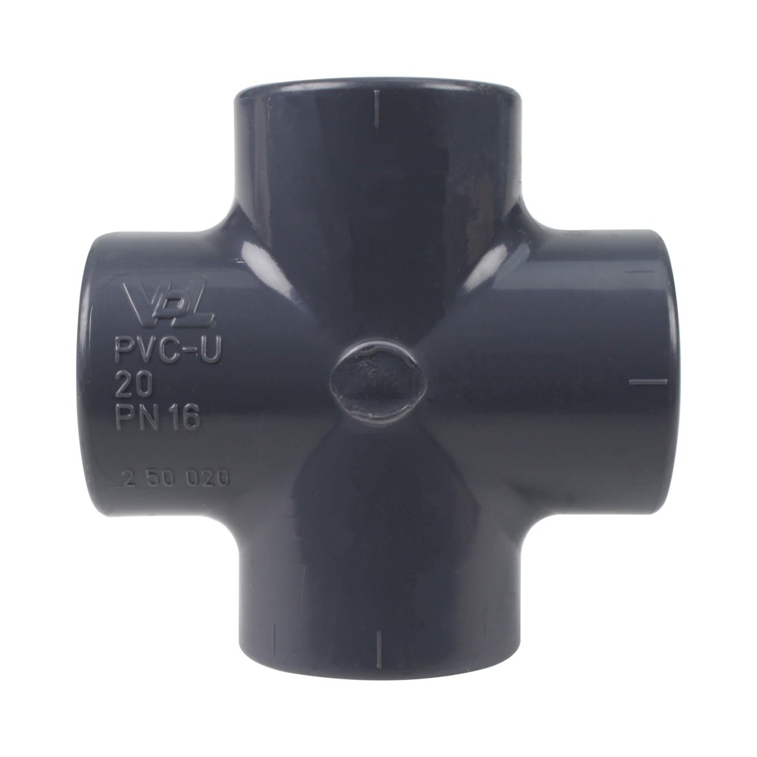 Croix pression 20 mm à coller. PVC pression de qualité alimentaire et fabirqué en Europe