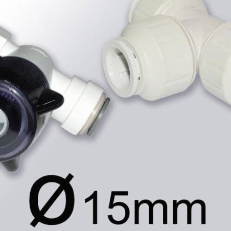 Expédié sous 48 heures Raccord connexion Té égal raccord rapide 15 mm DMfit ALP006632 5,20 € Té égal raccord rapide 15 mm. Ce raccorde avec du tube 15 mm. Ajouter au panier