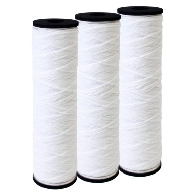 - Ces cartouches bobinées sont composées de fil de polypropylène (prélavé en usine pour éviter tout relargage), enroulé sur une âme cylindrique rigide perforée, assurant à la fois la rigidité de la cartouche et une surface de passage maximum.