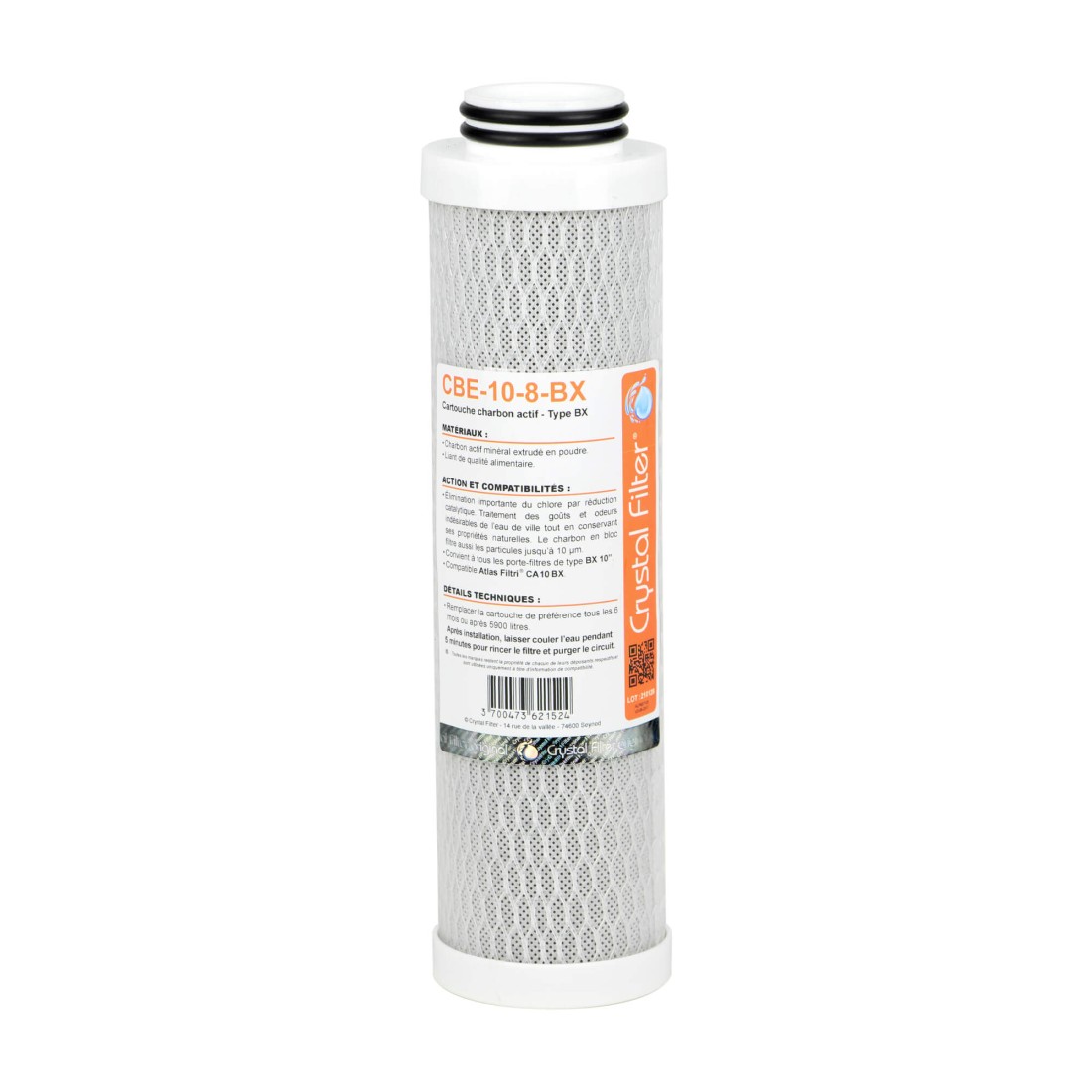 Cartouche charbon actif bloc BX 10'' - Filtration à 10 µm - Crystal Filter CBE-10-8-BX.