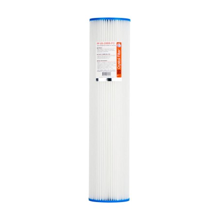 Cartouche sédiment plissée à grande surface de filtration Crystal Filter PF-05-20BB-PO. Filtre à eau de taille 20'' (~ 50.8 cm de longueur) Big Blue (~ 11,4 cm de diamètre).