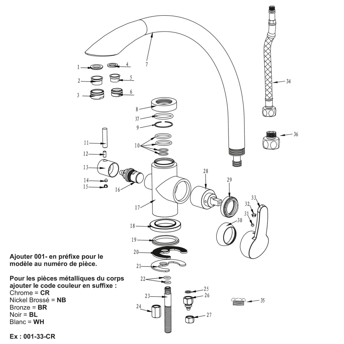 - Pour l'eau du réseau : 2 flexibles avec raccord 3/8'' (et adaptateurs 3/8'' - 1/2'' pour installation sur arrivée d'eau en 1/2'').