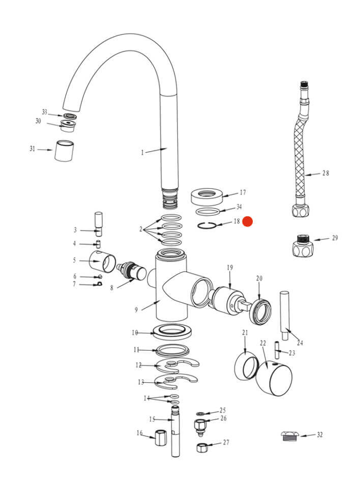Pièce de rechange pour robinets Biscayne : joint en téflon blanc de type ''clip'' : se place sur la canne du robinet.