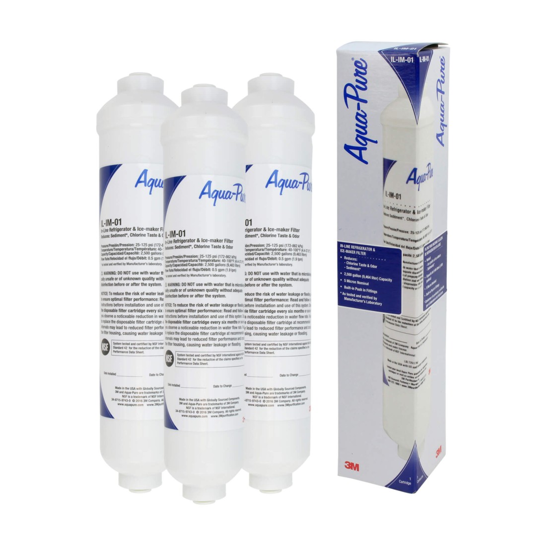 Filtre universel 3M IL-IM-01 pour réfrigérateur américain avec raccords sur tube d'alimentation en 1/4'' - lot de 3