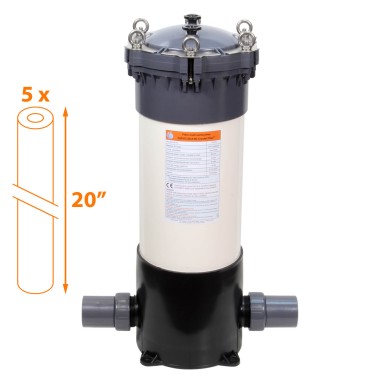 Filtre pour 5 cartouches de 20 pouces. Filtre multi-cartouches FHPVC-20x5-B2 Crystal Filter® en PVC pression.