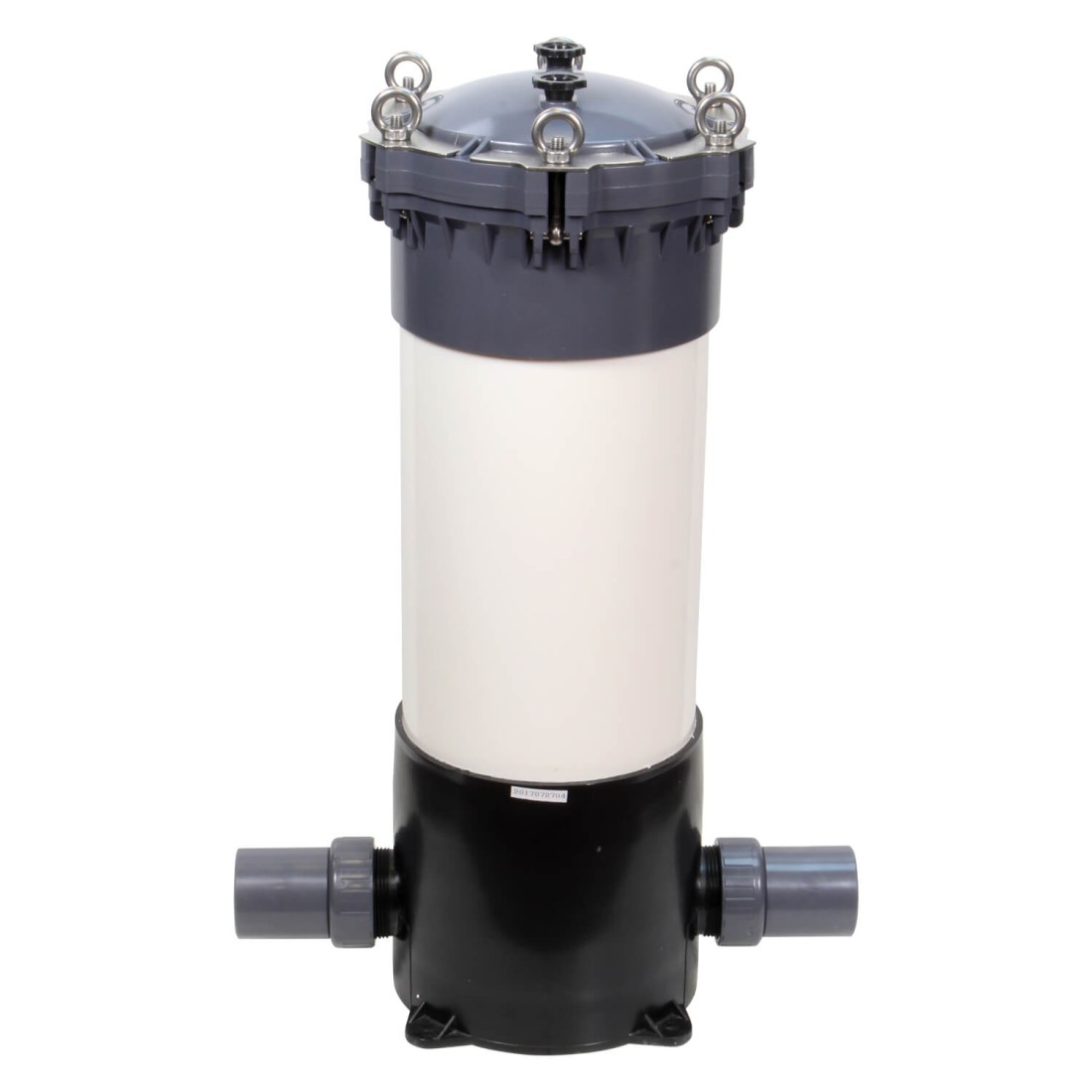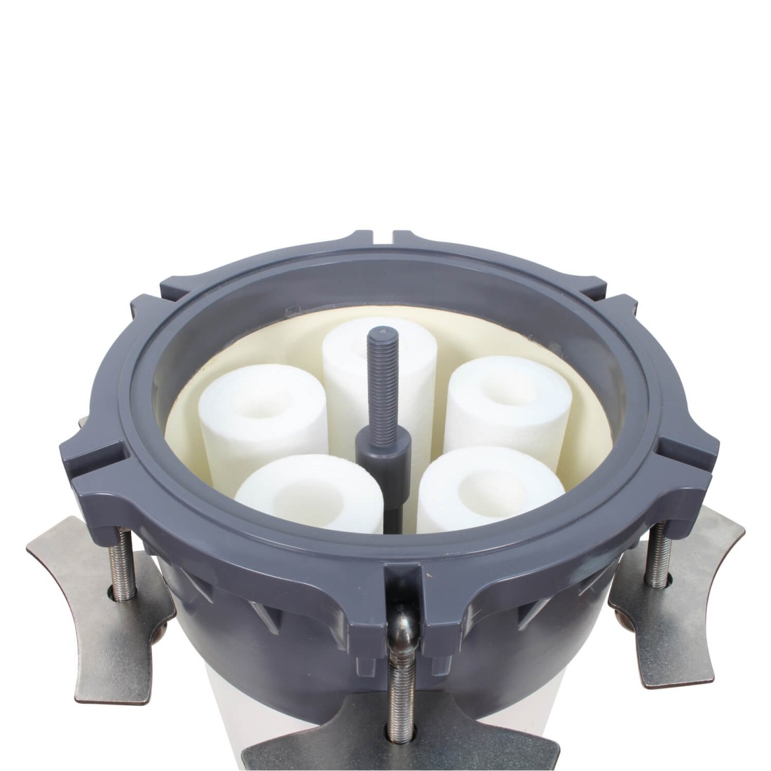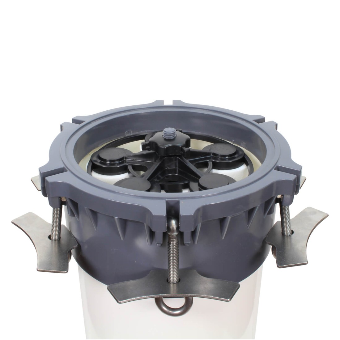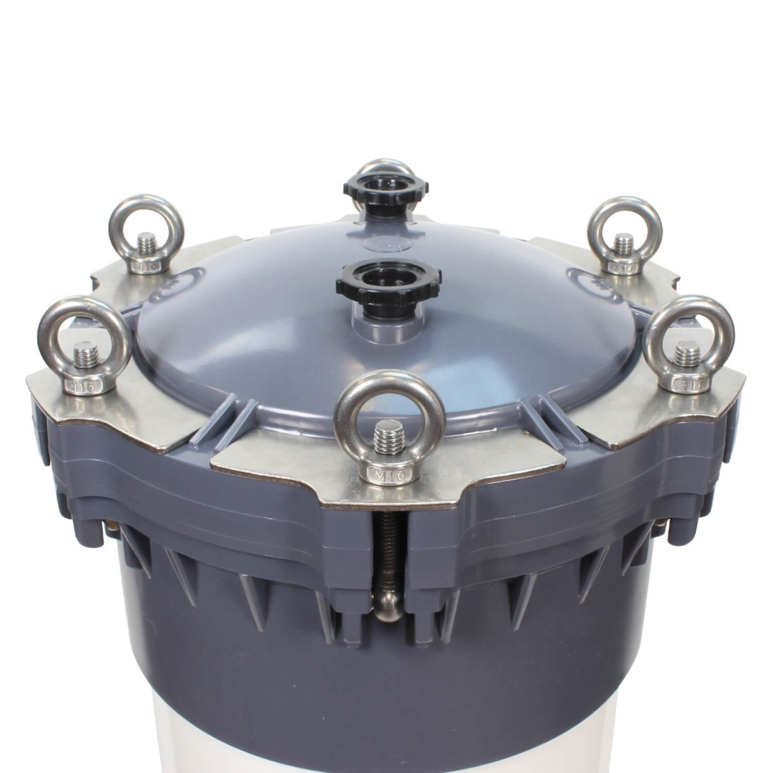 Ce filtre multi-cartouches existe également avec un couvercle de type A sous la référence Crystal Filter® FHPVC-20x5-A. Le filtre multi-cartouches Crystal Filter® FHPVC-20x5-A se ferme par un écrou en plastique à visser, pour une plus grande facilité d’utilisation, mais avec une moindre résistance à la pression.