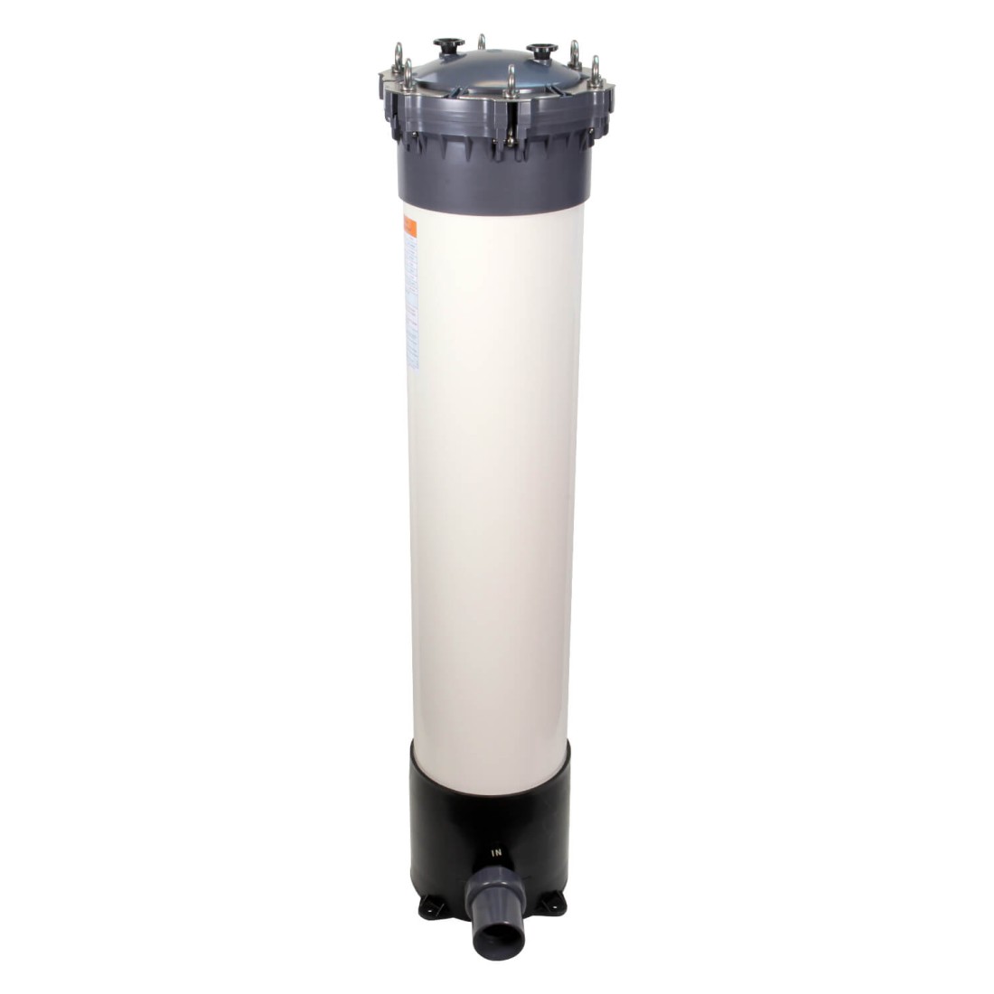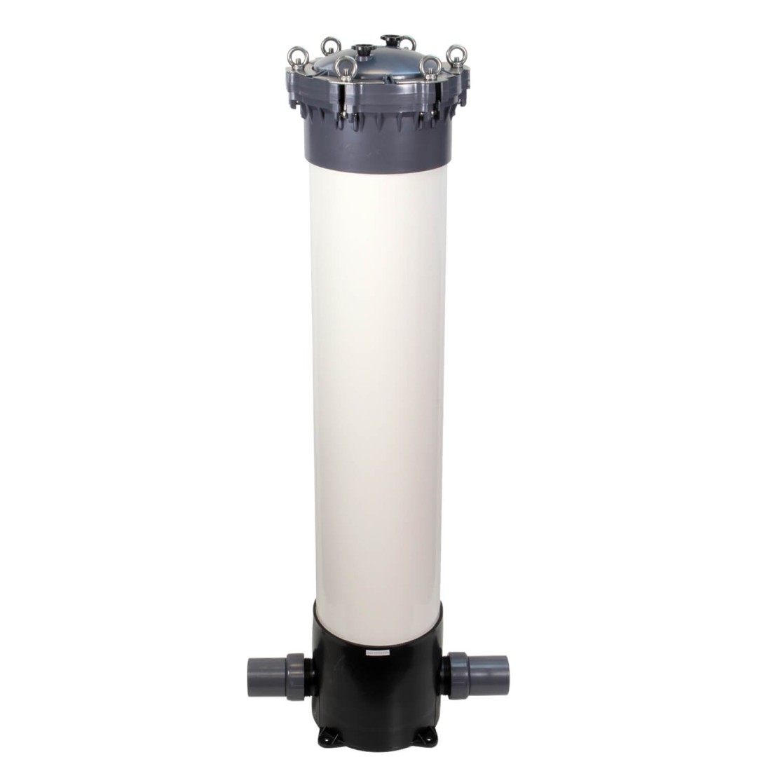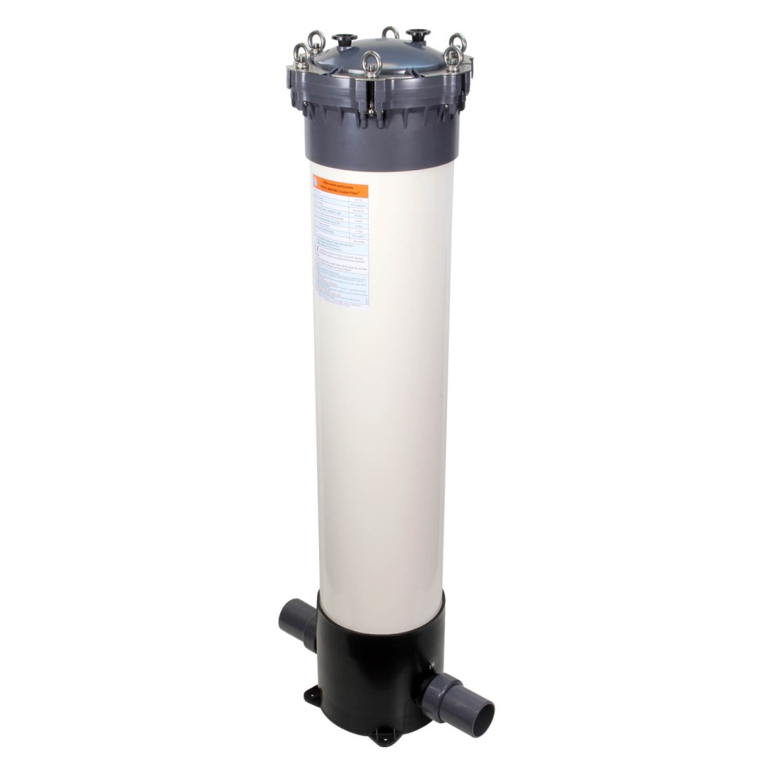 Ce filtre multi-cartouches existe également avec un couvercle de type A sous la référence Crystal Filter® FHPVC-40x5-A. Le filtre multi-cartouches Crystal Filter® FHPVC-40x5-A se ferme par un écrou en plastique à visser, pour une plus grande facilité d’utilisation, mais avec une moindre résistance à la pression.