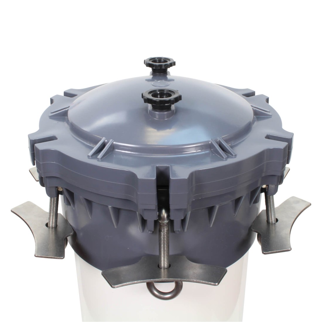 Le couvercle (type B2) de ce filtre multi-cartouches Crystal Filter® FHPVC-40x5-B2 se ferme par des boulons basculants, avec l’avantage d’une meilleure résistance à la pression par rapport aux corps de filtre multi-cartouches utilisant un couvercle de type A.