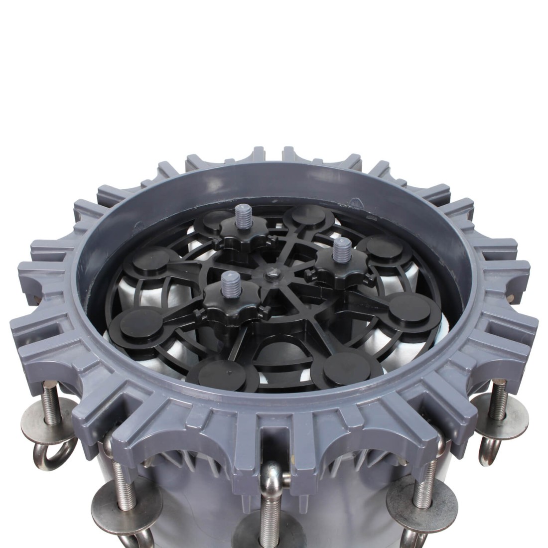 Le couvercle (type B) de ce filtre multi-cartouches Crystal Filter® FHPVC-20x9-B se ferme par des boulons basculants, avec l’avantage d’une haute résistance à la pression.