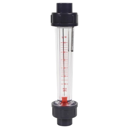 Débitmètre avec flotteur en ABS pour lecture du débit de 10 L/ h à 100 L/h.