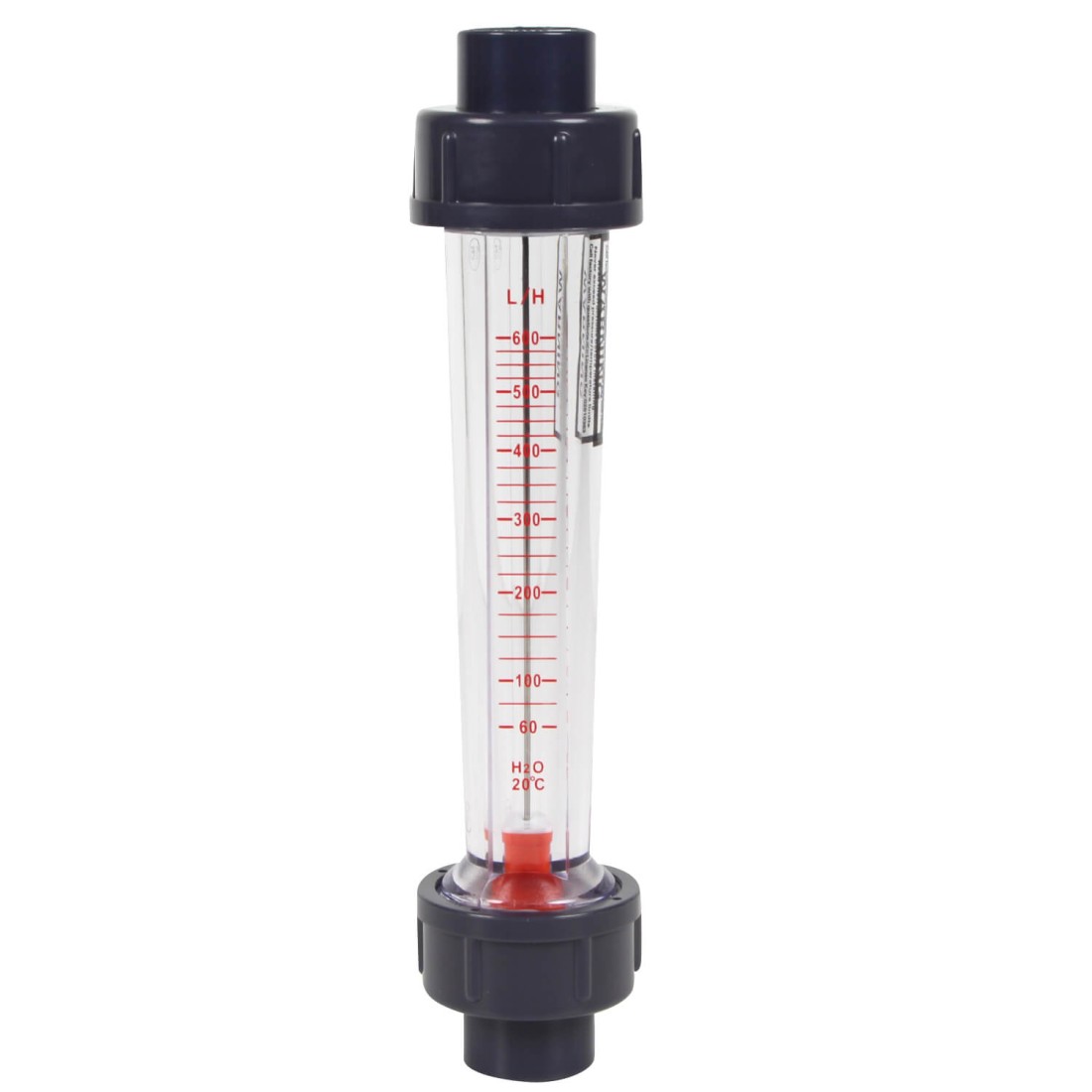 Débitmètre avec flotteur en ABS pour lecture du débit de 60 L/ h à 600 L/h.