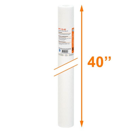 Cartouche sédiment SPUN 100% pure polypropylène à haute profondeur de filtration Crystal Filter PP-10-40. Filtre à eau de taille 40'' (~101,6 cm de longueur).