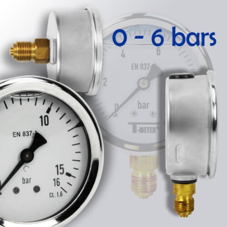 Manomètre 0-6 bars - diamètre 50 mm ou 63 mm, 1/4" Inox Insert laiton, radial ou axial ,