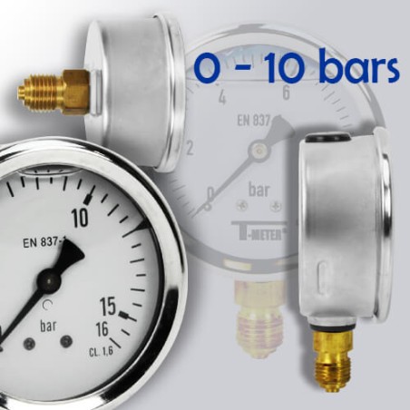 Manomètre 0-10 bars - diamètre 50 mm ou 63 mm, 1/4" Inox Insert laiton, radial ou axial,