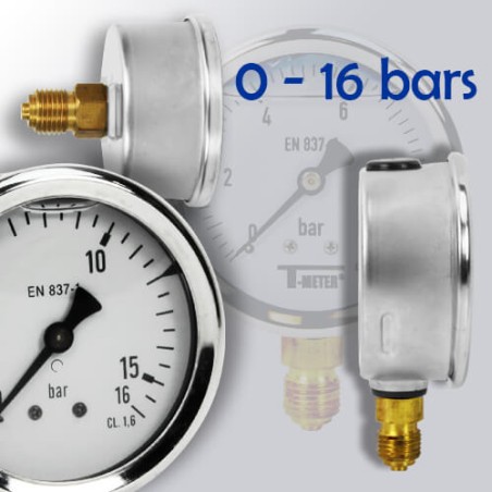 Manomètre 0-16 bars - diamètre 63 mm ou 53 mm, 1/4" Inox Insert laiton, radial ou axial,