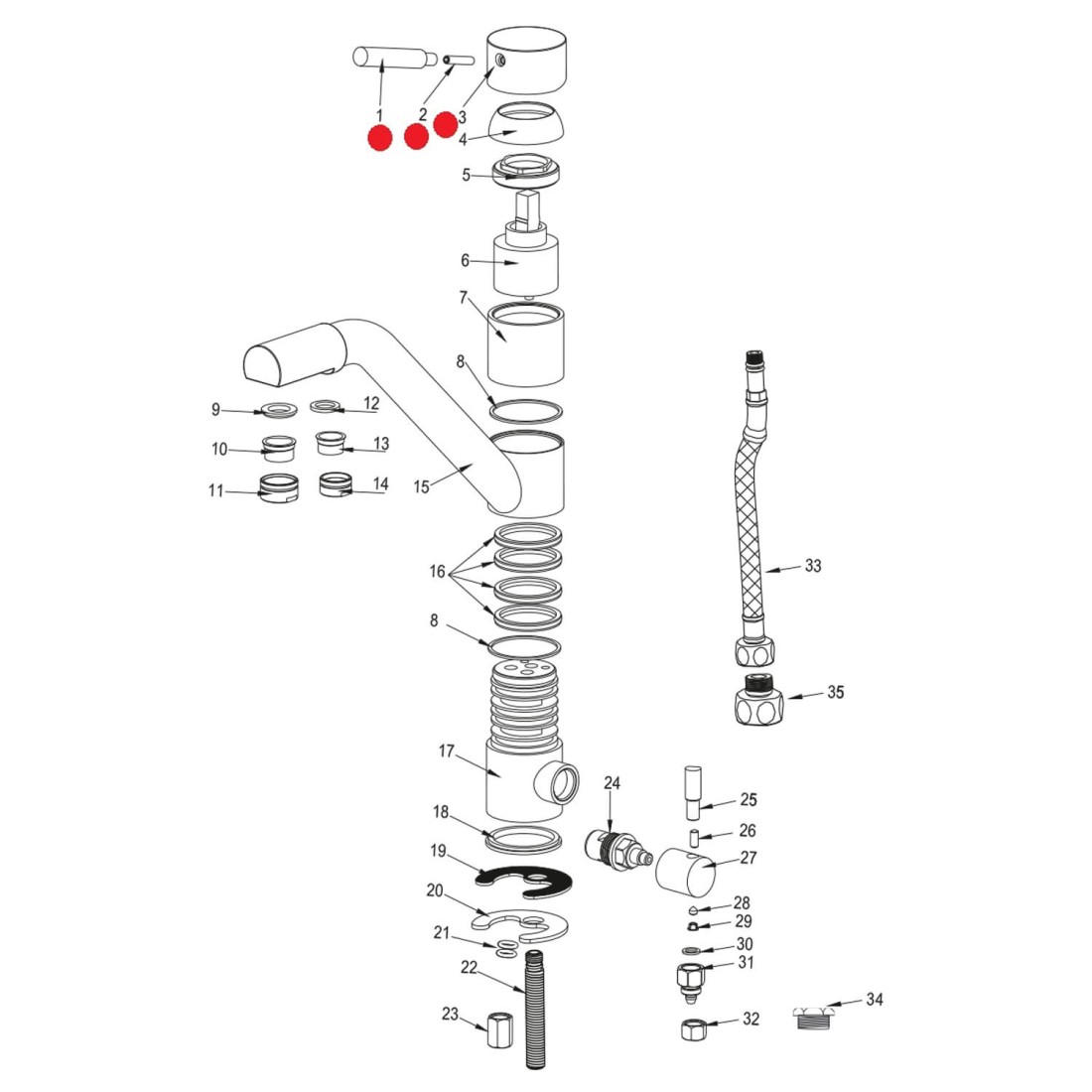 Correspondance des pièces détachées suivant vue en éclatée du robinet :