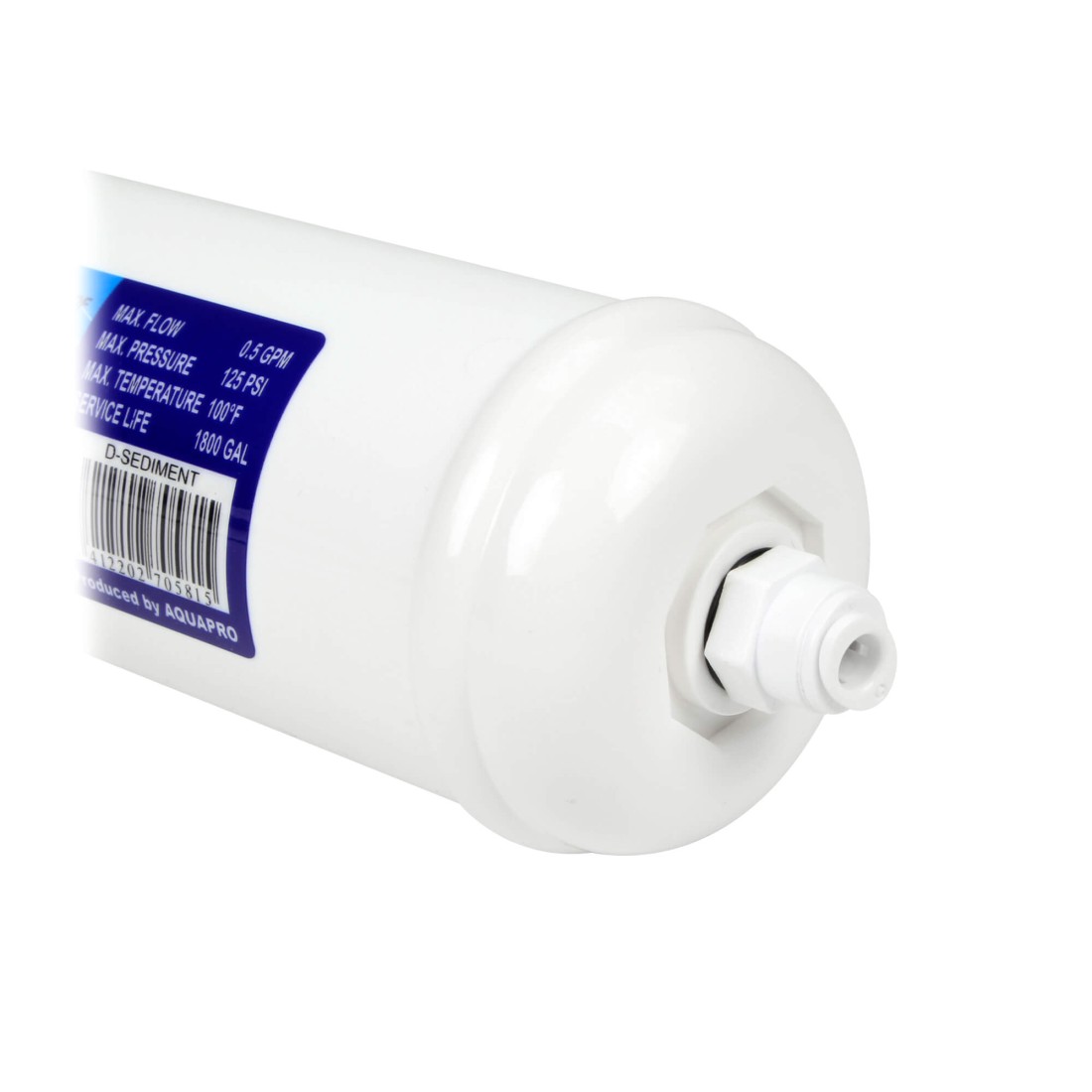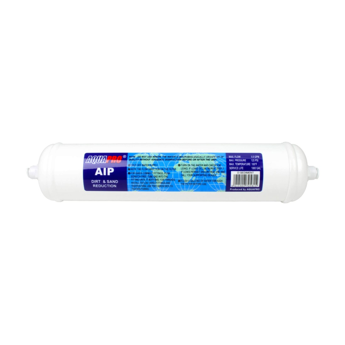 Cartouche de filtration sédiment AIP AQUAPRO avec raccord rapides pour tube 1/4'' de taille 12'' x 2,5'' (raccords compris).