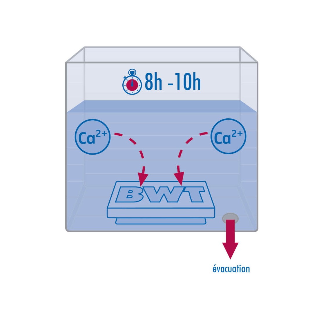 Sans installation, il est très simple d'utilisation. Il suffit de le placer dans le réservoir et de le laisser agir (voir mode d'emploi) : les sachets contiennent une résine spécifique qui va capter les ions calcium, responsables de l'entartrage. Ils contiennent également du charbon actif, qui retiendra les éléments indésirables de l'eau du réseau, tels que le chlore.