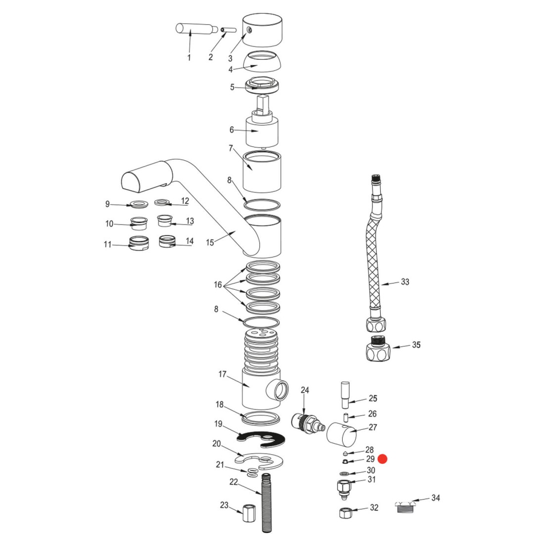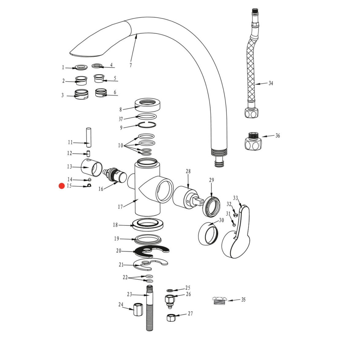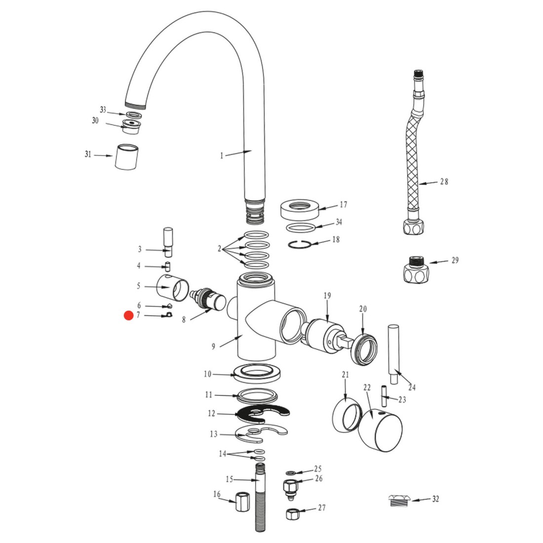Correspondance des pièces détachées suivant vue en éclatée du robinet :