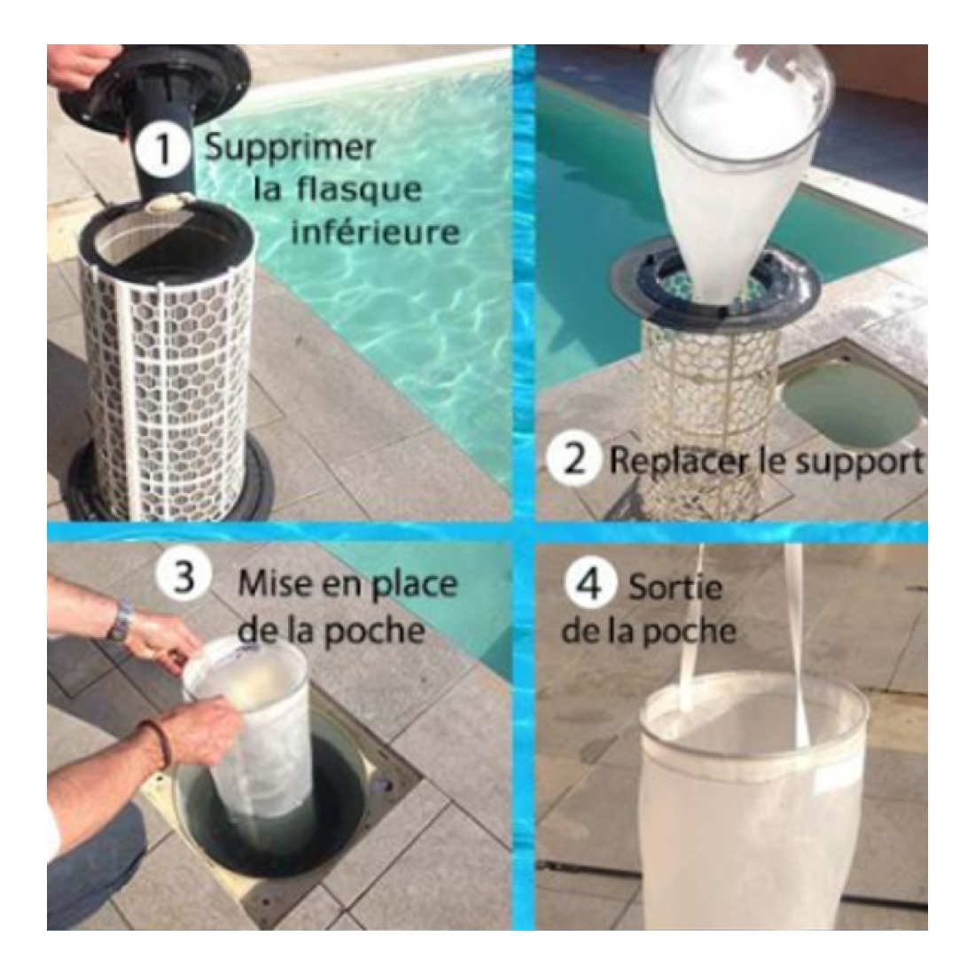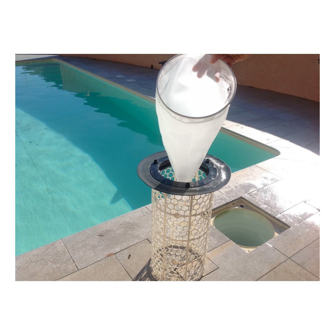La poche filtrante peut également être une alternative à la cartouche pour obtenir une eau azurée lorsque le besoin de filtrer plus finement se fait ressentir (présence de poussière, pollen...)