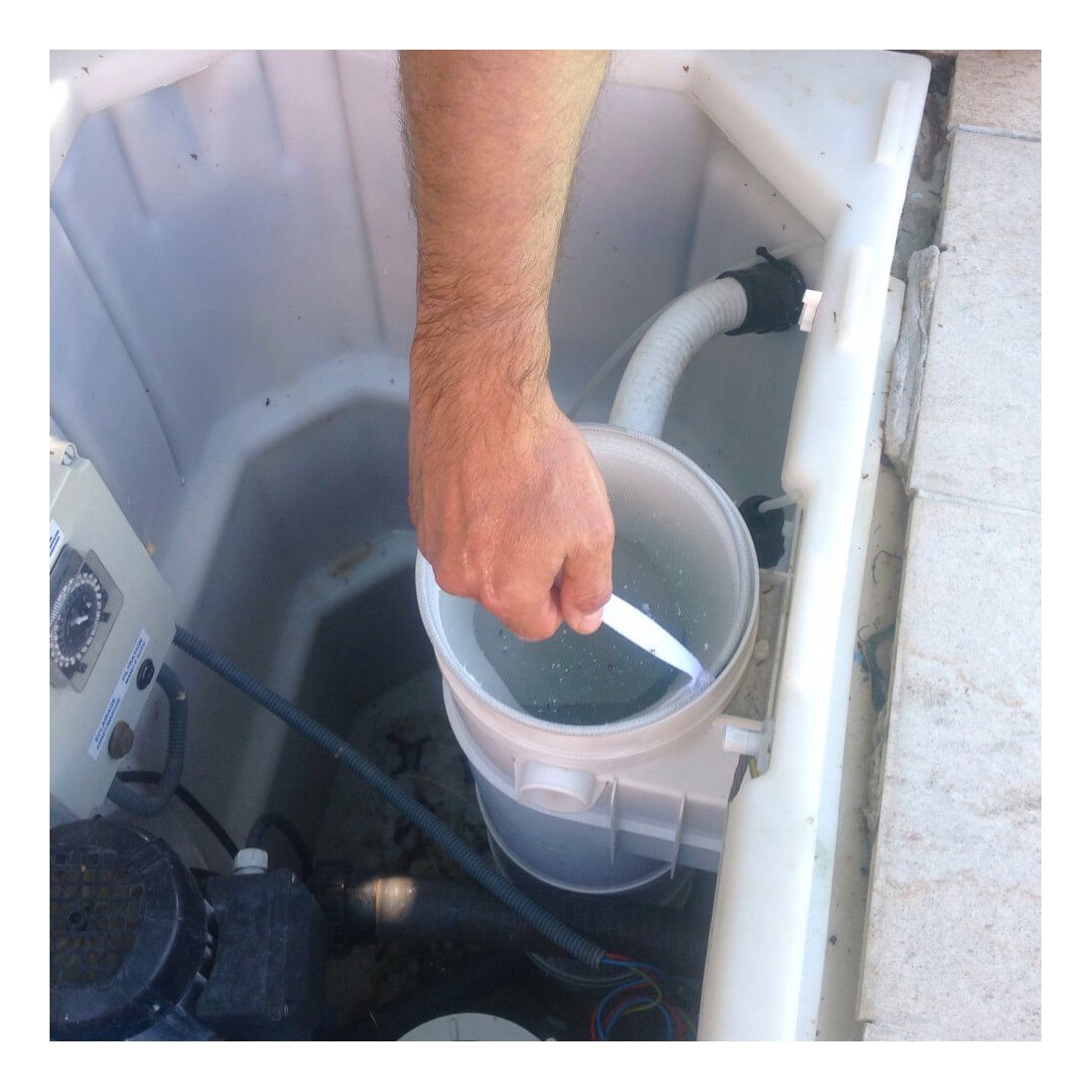 Sa forme de panier permet d'y déposer des galets de chlores, de l'oxygène actif... Pratique, son anse aide au retrait du panier préfiltre.