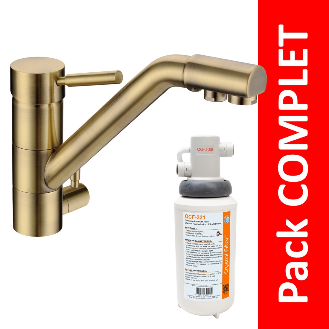 - Une cartouche QCF-321 : filtre PREMIUM 3 en 1 haute qualité, par ultrafiltration
