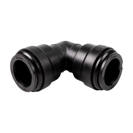 Le corps de ce raccord est en copolymère d’acétal noir, les dents d’accrochage sont en inox et le joint est en nitrile. La composition des matériaux répond aux normes et aux exigences de la FDA et est également agréée des certifications NSF et ACS. Ce sont des matériaux sûrs et non toxiques.