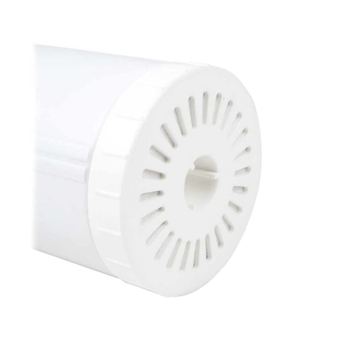En ABS résistant aux chocs, le conteneur est livré avec l'embout à visser, afin de le remplir avec n'importe quel média souhaité pour le traitement de l'eau.