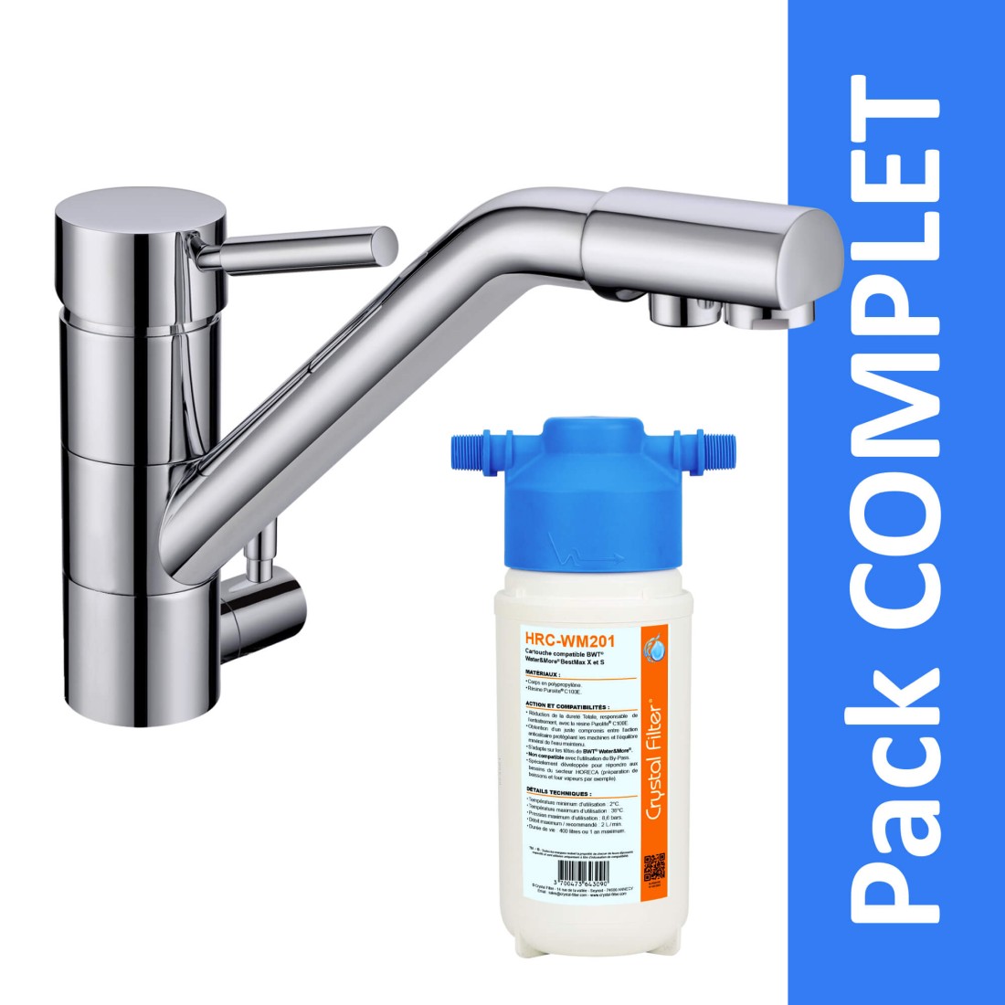 Bénéficiez d'un pack prêt à installer et d'une alternative aux carafes filtrantes de type Brita®, pour une eau sans calcaire directement au robinet.