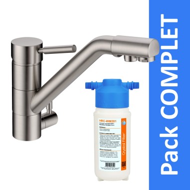 Bénéficiez d'un pack prêt à installer et d'une alternative aux carafes filtrantes de type Brita®, pour une eau sans calcaire directement au robinet.