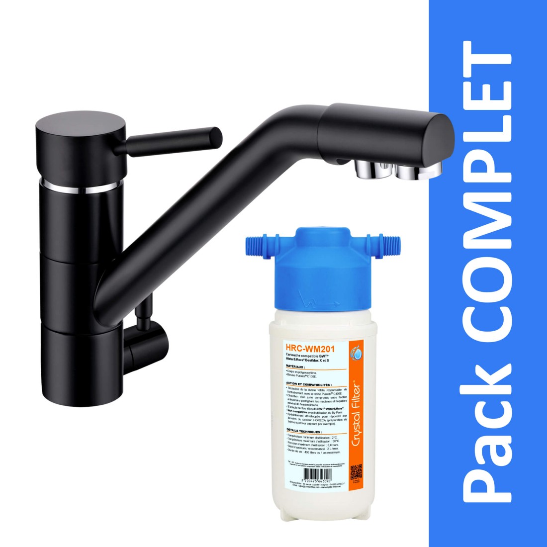 Bénéficiez d'un pack prêt à installer et d'une alternative aux carafes filtrantes de type Brita®, pour une eau sans calcaire directement au robinet.