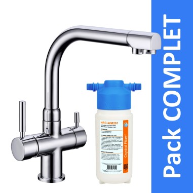 Robinet mitigeur pour eau chaude, eau froide et eau purifiée.