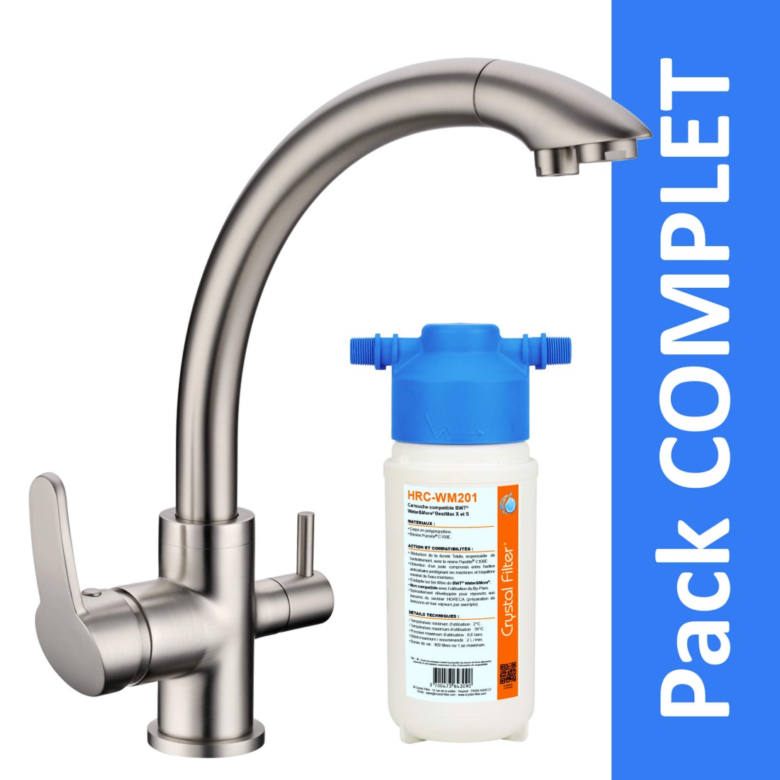 Bénéficiez d'un pack prêt à installer et d'une alternative aux carafes filtrantes de type Brita®, pour une eau sans calcaire directement au robinet.