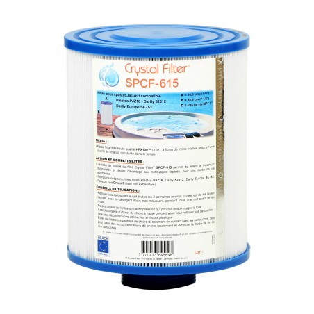 Filtre spa Crystal Filter®, modèle SPCF-615 Compatible Pleatco PJZ16 - Darlly 52512 - Darlly Europe SC753.