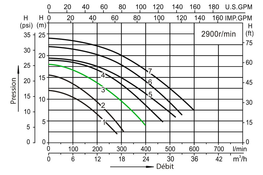 - Débit : 400 L/min (24 m³/h)