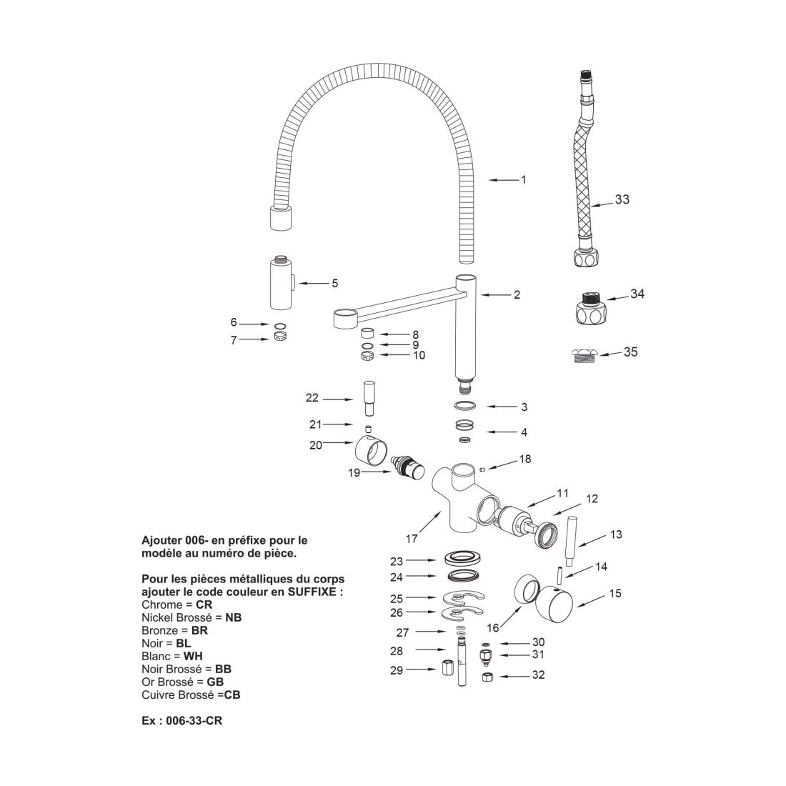 Pour eau du réseau et eau purifiée. Flexibles 3/8''.