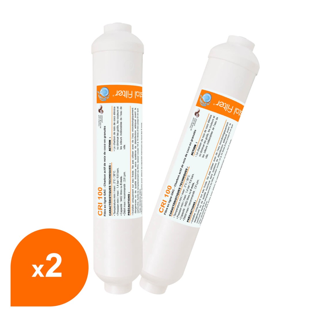 Cartouche en ligne charbon GAC Crystal Filter CRI 100 pour caravane.