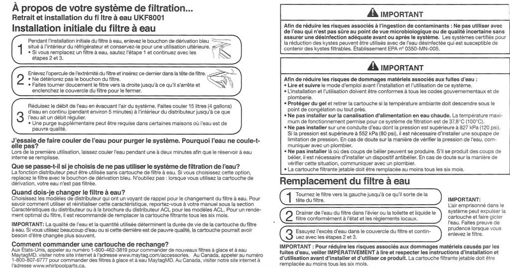 Le filtre à eau pour réfrigérateur américain de marque Maytag Puriclean II est certifié NSF (National Science Fondation, l'organisme américain responsable des certifications alimentaires).