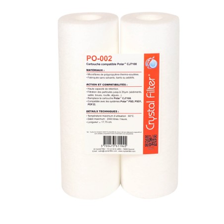 La cartouche Crystal Filter® PO-002 permet de remplacer le filtre référence CJ7100 (50µm) de Polar™.