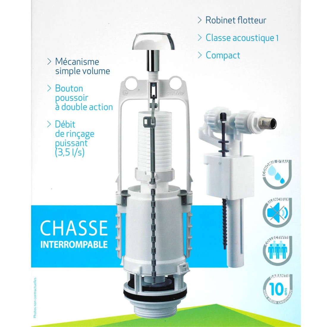 Chasse d'eau économique. Mécanisme interrompable à bouton poussoir.