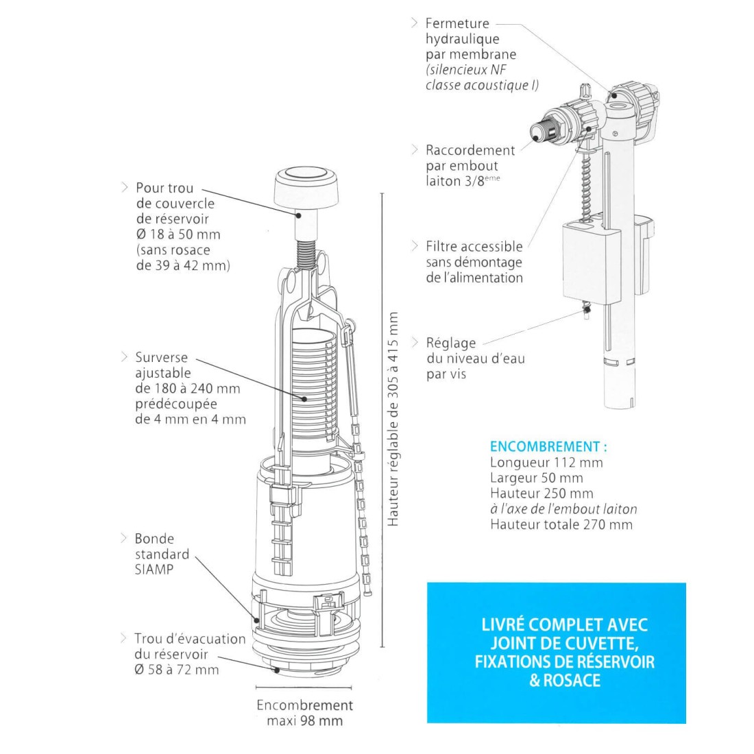• Étrier : tolère les excentrations courantes dans les anciens réservoirs, permet de maintenir le couvercle du réservoir